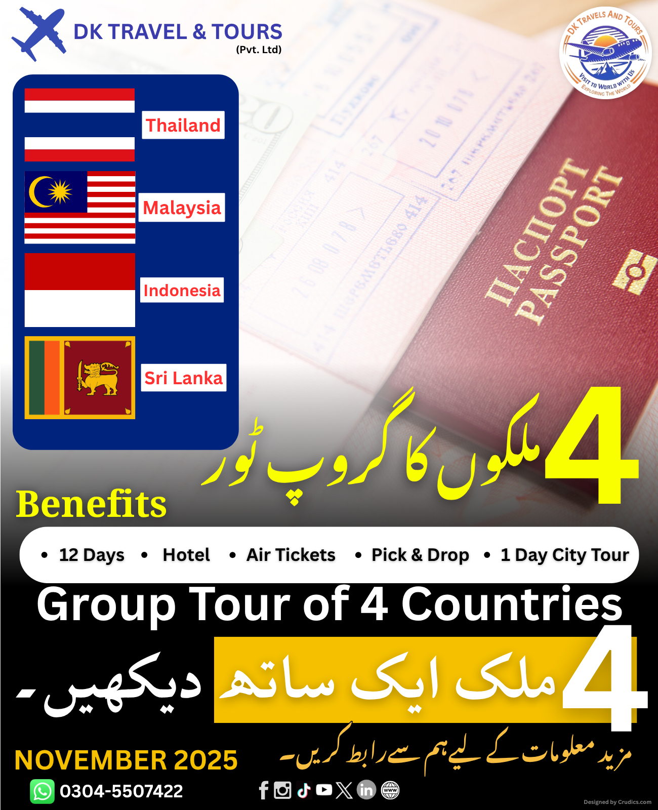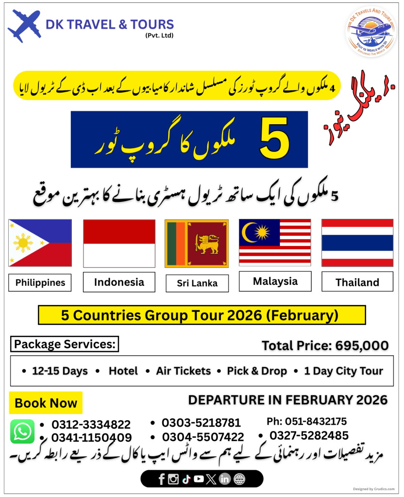Since 2000. We are a premier travel agency renowned for our comprehensive services and customer-centric approach. With a robust network of partners and a team of experienced professionals, DK Travels and Tours is dedicated to making every journey seamless, enjoyable, and memorable. Whether you’re planning a business trip, a family vacation, or a solo adventure, DK Travels and Tours is your trusted partner in travel, offering a wide range of services to meet all your travel needs. Services Offered: Flight Booking Visa Assistance Hotel Reservations Customized Tour Packages Corporate Travel Management World Tours/Pakistan Tours. Franchise Opportunities At DK Travels and Tours, we are committed to delivering exceptional service and creating memorable travel experiences. Explore our offerings and take advantage of our latest deals for an unforgettable journey. ​